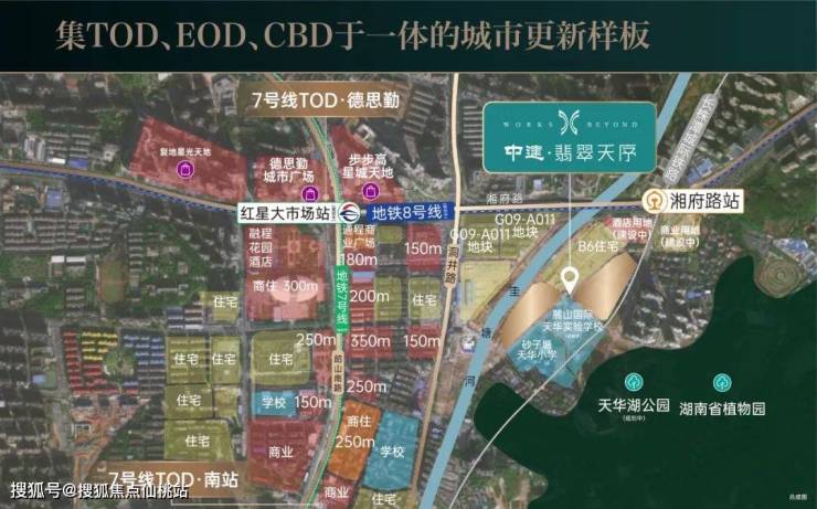 5号线板塘冲站约1.2km,7号线红星大市场站(建设中)约800m,地铁8号线(规划中)&长株潭城际铁路S1线湘府路站约300m;长沙汽车南站综合交通枢纽站、城际S1联通株洲湘潭,地市通达无阻;