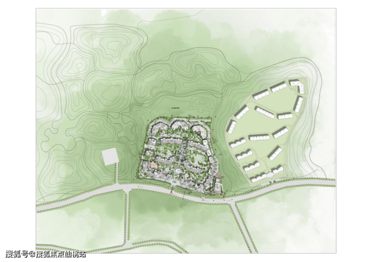 -市政入口到达区为草甸,通过入口及市政绿化带起伏的地形和草甸体现。