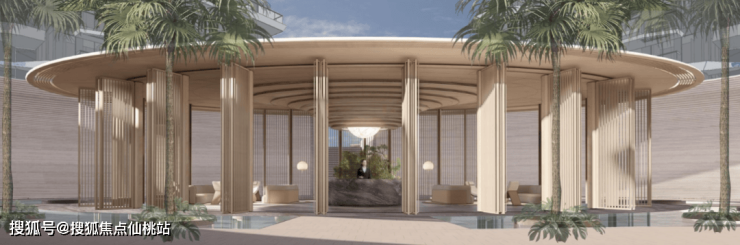 建筑立面整体呈现代简洁风格,结合海岸风情、海水湿地环绕的环境特质,以更加生动的形式去营造和谐与整体的比例,强调地域化的特征。设计提出松弛度假的主题,通过变化的水平线条表达横向舒展的意向,勾出动态、生动且有生命力的建筑形象。同时在近人尺度上增加建筑的丰富性。在建筑材料上,底部基座局部采用石材、仿木纹金属等材料,上部采用仿石铝板及金属装饰线条。营造一种属于三亚的,质朴的、放松的、自然的、现代的建筑气质。