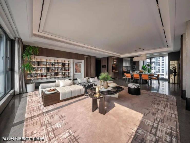 采用无主灯吊顶,品牌三大件涵盖大金中央空调、百朗新风系统、霍尼韦尔净水器,厨房采用金厨博世三件套,卫浴臻选高仪、劳芬。