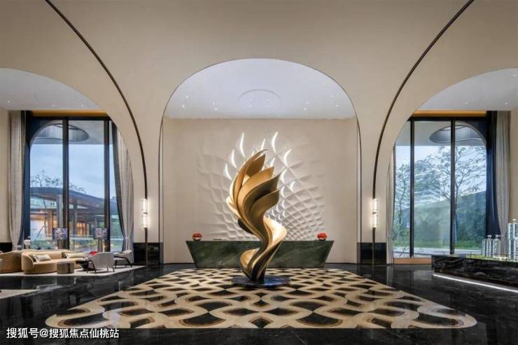 据悉,项目甄选了32种奢石和各类名贵树种,如社区大门前的蓝翡翠奢石水景底座、会所吧台的宝格丽白奢石、会所迎宾台绿野仙踪奢石、门把手镶嵌普拉达绿奢石等等,园林景观更有椤木石楠、全冠移植凤凰木等等。结合东方礼序的一进礼仪广场,二进迎宾大堂,三进下沉会所,藏艺于内,每一进皆震撼。